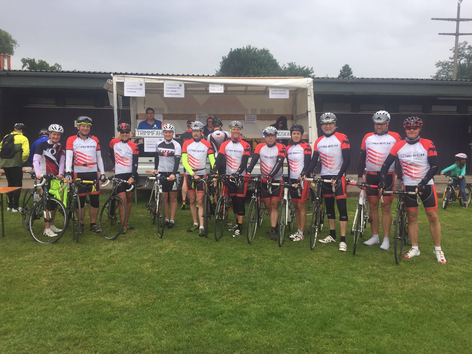 Wir kamen durch einen Ort namens Verlüßmoor – verlassenes Moor? – als uns ein Schäflein verloren ging. Nachdem sich zwei Hirten auf die Suche machten, legte die restliche Truppe eine Rast ein. Dabei trafen wir auf Matthias Schmitt und einige schweißüberströmte Jungs. Einer davon war sogar mit einem Trekkingrad unterwegs, was z.B. mich an meine Anfangszeit erinnerte. Damit wurde die Leidenschaft für schnelle Räder geweckt! Matthias war erstaunt, dass wir nur eine One-Way-Tour geplant hatten. Aber es gibt ja Rennradfahrer, die auch Fußballenthusiasten sind, und das Deutschlandspiel auf keinen Fall versäumen wollten.