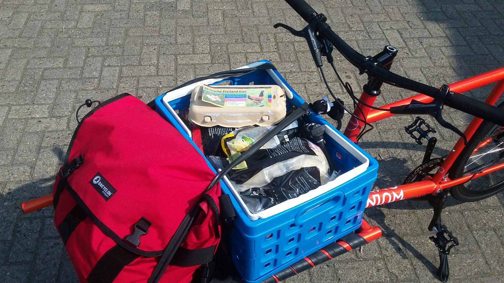 Fazit: tolles Rad! Das Fahren an sich hat soviel Laune gemacht, dass die Transportmöglichkeit ein angenehmer Nebeneffekt ist. Bock auf Bike! Dazu kommt der kommunikative Aspekt, ich fiel mit dem für den ländlichen Bereich ungewöhnlichen Gefährt auf und wurde oft angesprochen. Als Radfahrende kommt man wesentlich leichter in Kontakt mit anderen Menschen als Autofahrende in ihren Einzelzellen.