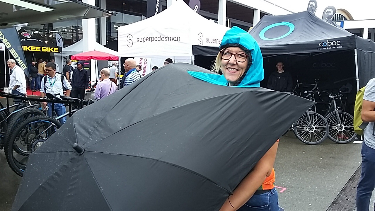 Zum Ende eines langen Tages wollte ich mich und meine Geräte in der Bloggerbase wieder aufladen. Es fand gerade die sogenannte Fashionshow statt. Fitnessmodels in Fahrradklamotten führen Tanzchoreographien vor. Aha, dann kann man mit Fahrradhelm und Trinkrucksack also auch Breakdance machen… sehr realitätsnah! 🤣 Wenn es doch nur nicht so brüllend laut gewesen wäre! Ich hatte das Gefühl, mir müsste jeden Moment Blut aus den Ohren laufen. Flucht war das einzig Mögliche.