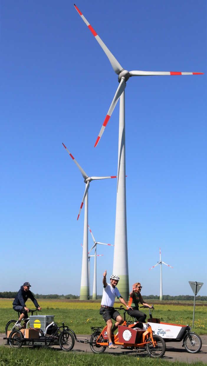 Historie trifft Moderne: Dirk Wassermann (links) mit seinem historischen Lastenrad und Uwe Wöhlbrandt (rechts) vom Fahrrad-Express mit einem Bullitt.