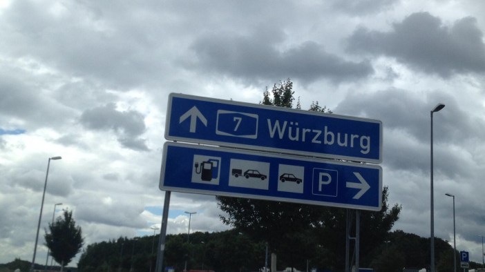14:15 Uhr: Zwischenziel erreicht Raststätte Riedener Wald bei Würzburg. In Bayern scheint die Sonne – der Verbrauch runter auf 16,5 kWh, dank Claus Wahlers sparsamen Stromfuss.