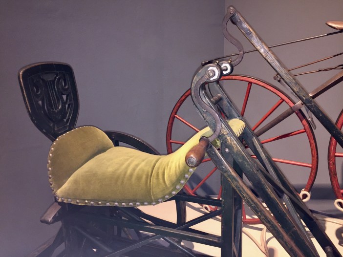 Die Oldtimer unter den Rädern hatten einige interessante Ideen: Gepolsterte Sättel, die an Sofas erinnern, Pedalen mit Körbchen, die jedoch nicht das Fahrrad antreiben, sondern zur Lenkung dienen oder eine als Lehne getarnte Bremse.